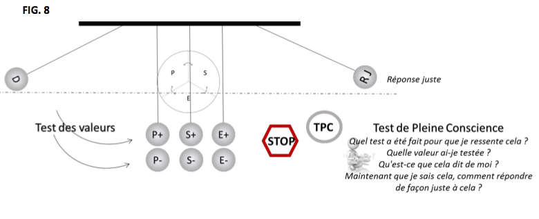 Il s’agit donc bien d’un apprentissage et d’un entraînement qui n’est pas que mental. L’objectif de ce modèle n’est pas de rester dans les pensées. Il vous faudra tout d’abord apprendre à ralentir et à porter votre attention sur vos P ; S ; E. Ensuite, vous entrainer à entendre ce qui est testé pour enfin apprendre à entrer dans la liberté de répondre conformément à vos valeurs profondes.