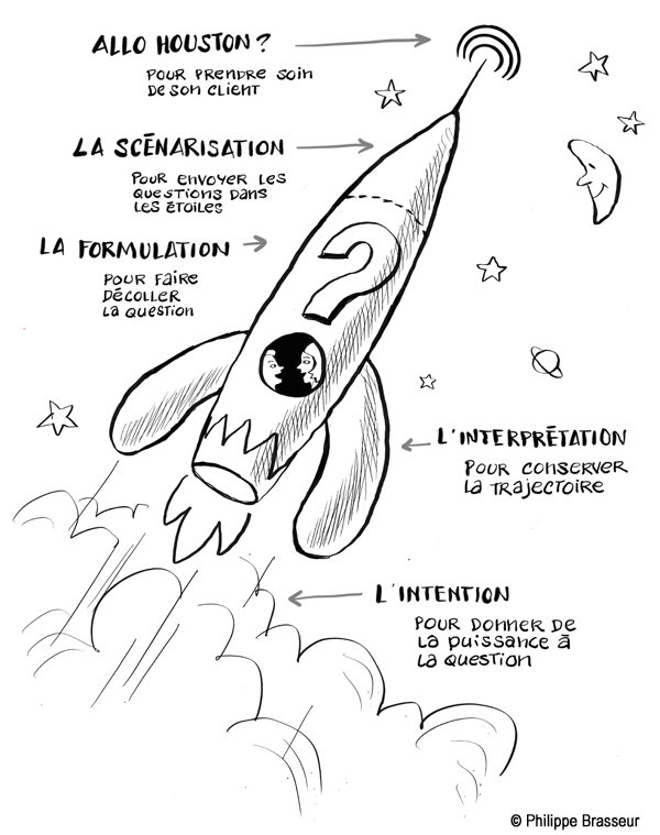 Il y a quelques temps, dans un séminaire d’affûtage de questions, nous avons comparé cet art du questionnement aux étapes du décollage d’une fusée : car une question puissante permet de propulser la réflexion du client vers de nouveaux espaces et de nouvelles possibilités de considérer sa vie et ses choix.
