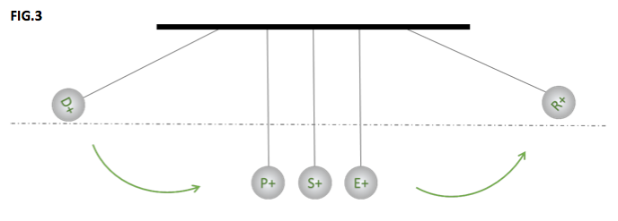 Ceci étant, lorsqu’il se passe quelque chose dans notre environnement et que nous le percevons (stimulus ou déclencheur) nous avons pour habitude de réagir de manière plus ou moins automatique. Avez-vous déjà réfléchi comment se construit cette réaction ? Je vous propose d’utiliser la métaphore du pendule de Newton pour illustrer notre propos. (Fig 1.)